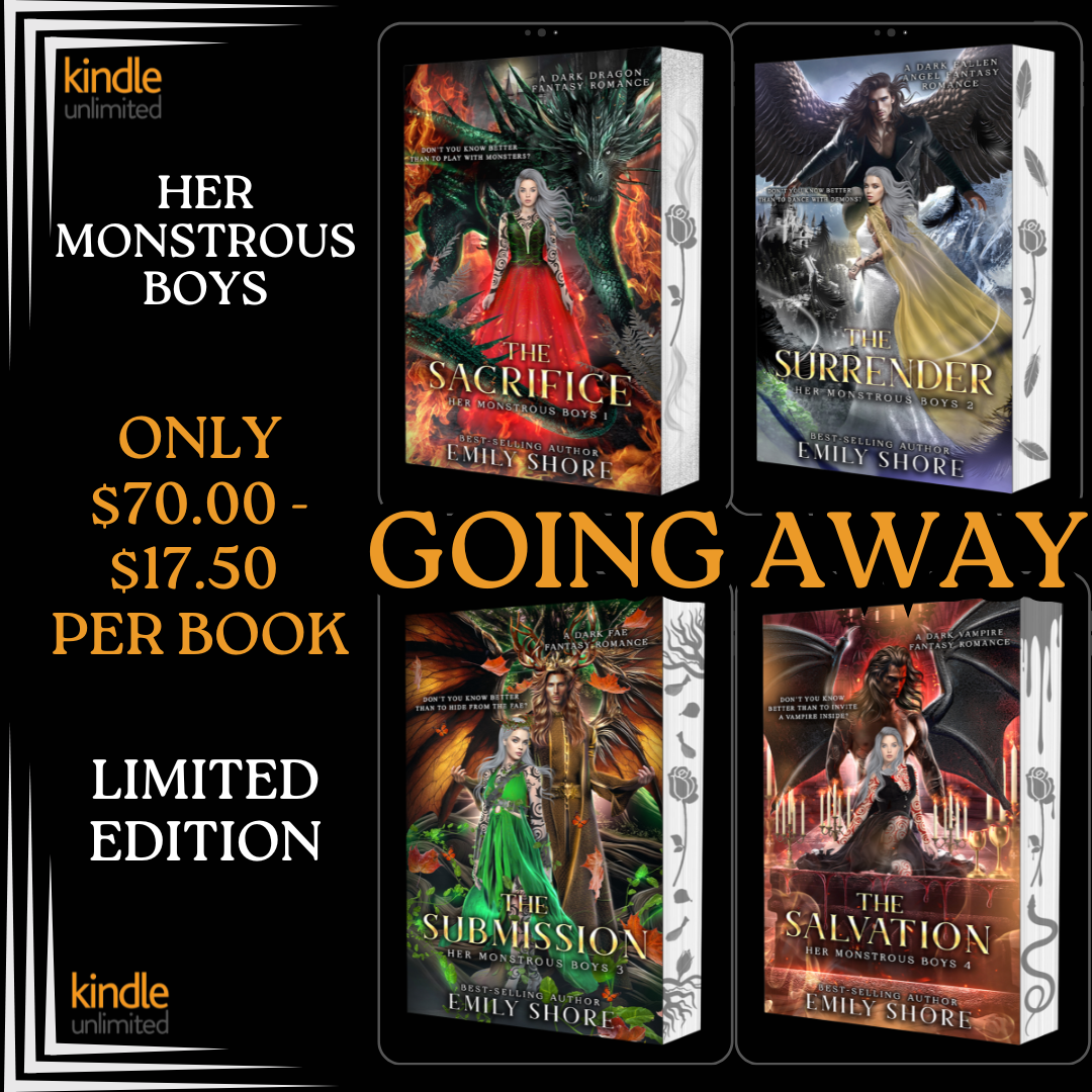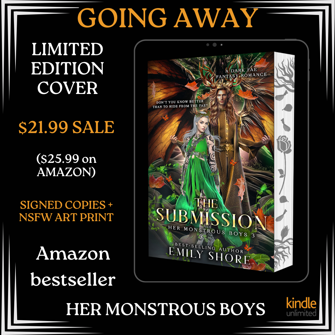 Indulge in the beauty of Emily's most popular series, a dark fantasy romance with the BRAND-NEW SPECIAL EDITION of THE SUBMISSION, book 3 in the Her Monstrous Boys Series featuring stunning, individually designed decorated edges for each book.